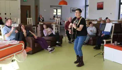 Errigal Truagh Special Needs Sing Song: Members of Errigal Truagh Special Needs love music and singing and they will be first onto the dance floor and the last to leave - They just love the music. Edelle McMahon knew of their love of music and she decided to call with them in the Errigal Truagh Centre on a day that suited them and herself. So on Thursday of last week it was arranged that she call on her way from Emyvale back to Belfast where she resides and works. For over an hour she sang and they sang and all enjoyed the session. They had special requests for certain songs and they joined with Edelle in the singing and when they requested a song that Edelle didnt have in her repertoire the members sang it for her. It was wonderful entertainment for all and they thanked Edelle for giving them a very enjoyable morning and asked her to come back another day. Edelle stated that she really had a wonderful morning’s enjoyment and promised that she would call again.