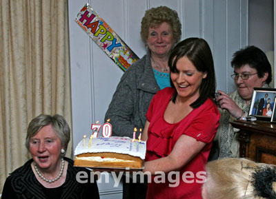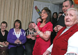 On Sat Feb 20th Nancy McCluskey, Main Street, celebrated a Big Birthday. Members of her family organised a get-together in the house and the family, friends and neighbours gathered in for the big occasion. Food was served and the traditional Cake with candles arrived. Nancy did the needful by blowing out the candles and then everyone sampled the delicious cake. There was plenty of chat and good humour and then Pat, Nancy’s brother, produced the guitar and Veronica the fiddle and it was clear that a late night was in store. Everyone enjoyed the occasion and we have recorded some of the people who attended.