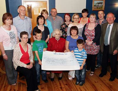 Some time ago the members of the local Ramblers Club organised a Sponsored Walk in memory of Owen Keenan and Harry McQuillan. It was decided that the money raised would be donated towards the Tydavnet Community Defibrillator scheme, so that another Defibrillator would be available in an emergency. Last weekend Bernie Monaghan and Friends handed over a cheque to the Defibrillator Committee mebers. Also present were members of the Keenan and McQuillan families, including Harry’s mother, Margaret.