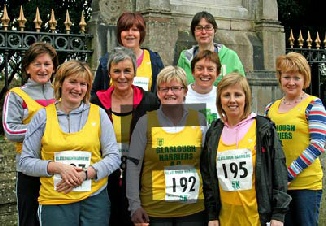 The Jolly Joggers get ready (how does this thing go on) and then arrive back en block.