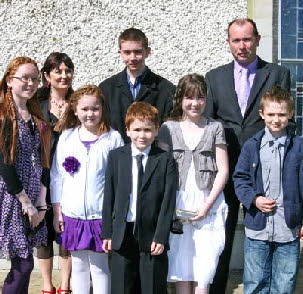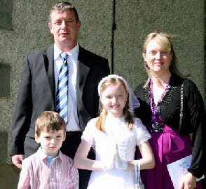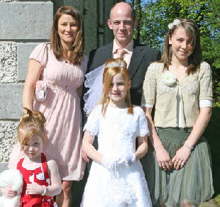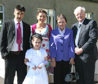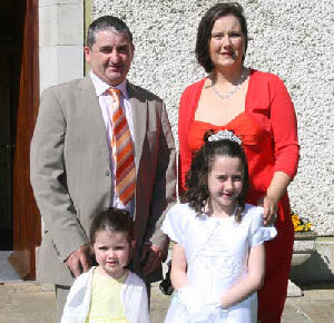 First Communion for Donagh Parish was held in St. Mary’s Glennan on Saturday, May 8th. A beautiful day in every way and the children and their families looked wonderful. Fr. Hubert was celebrant for the Mass. Here are some of the First Communicants with their family members.