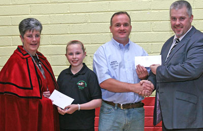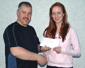Above and on right we see Fabian Murphy, Chairperson of the Emyvale Leisure Centre, presenting the prizes to the winners in the recent Logo Competition - Lauren Murphy, Enda Fields and Brianna McPhillips. Also in pic above is Emyvale Lord Mayor, Monica McKernan