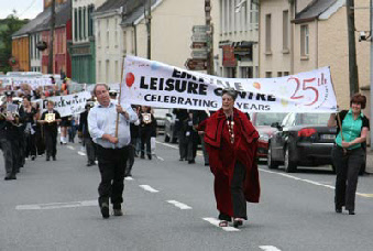 Brass Band and Mayor Monica leading. Paula Mc Aree and Eugene O’Brien carried the