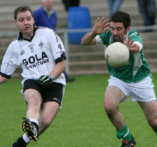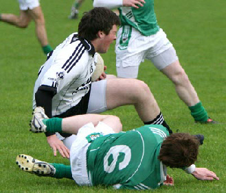 His loss was soon apparent and the Emyvale forwards had to play deep to get possession. Even so too often the Emyvale players overplayed the ball and showed a lack of confidence in going forward and taking a shot at the point. Darren McKernan was also injured and while he remained on the pitch it was obvious that he was still suffering and this lowered his effectiveness. However the players never gave in to the final whistle but it was all in vain.