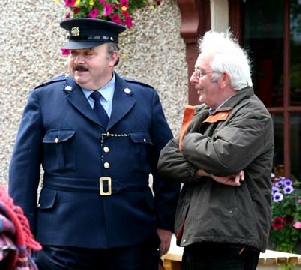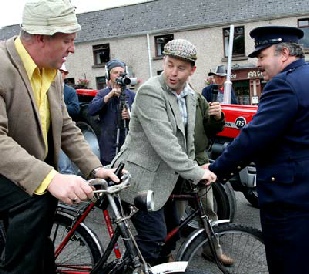 with the cast during the shoot. A Garda stepped in to prevent two drunks cycling