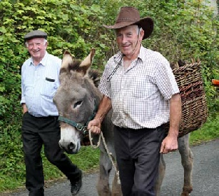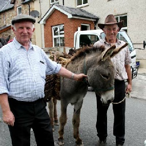 Above is John Treanor, Drumdart, who had a considerable input to the organising of the project, seen here carrying the creel from donkey to house.