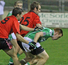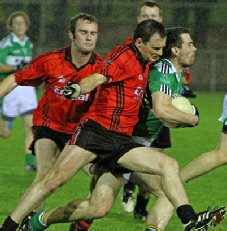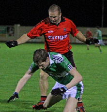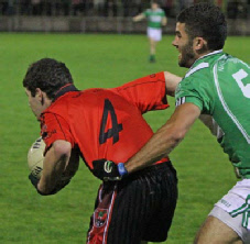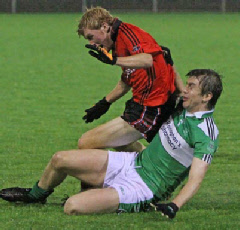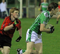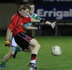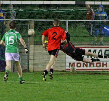 This game was played under lights at Emyvale on Friday, September 10th. Despite a wet night a big crowd turned out and enjoyed a tough and close contest which could have gone either way. Harps got off to a good start and when they rattled the net early on it took the Truagh lads a while to settle in and get to grips with the game. However by half time Truagh had taken control and went into the break with a six point cushion thanks to a great save by their keeper, Anthony Treanor.