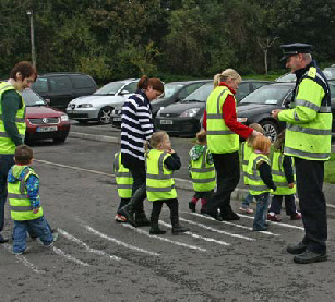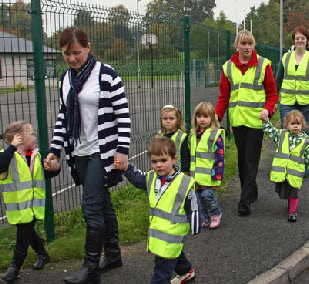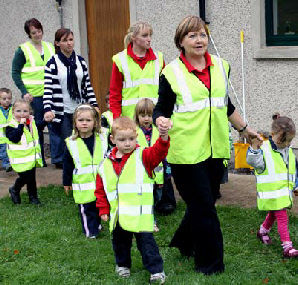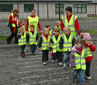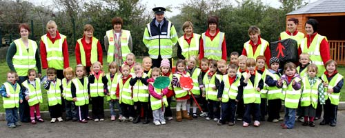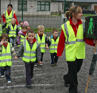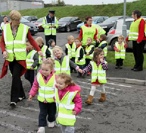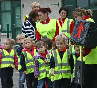 During the week of October 11th - 15th a Road safety Awareness Project was running in all the Infant Schools around the county. On Wednesday it was the turn of Tru Beginnings Childcare at Blackwater Learning Centre at Ballyoisin. I was invited along to see the event and was delighted to see and hear the great work being done the tutors and carers to make the children safety conscious. Garda Fintan Roe was present to assist and lend authority to the occasion and the children participated fully. We spoke to Garda Roe and you can hear what he had to say by clicking on his photo below. WE have also recorded a clip of the song being sung by the children top help them remember the safety rules for crossing the road. You can hear that by clicking the photo beside Garda Roe. The rest of the photos are taken during the exercise. Breda McKenna of the Childcare Network was co-ordinating the event in the different centres and Deirdre McKenna was the local organiser. Well done to all.