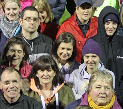 A big crowd took part in the Emy Belles unique and imaginative fundraiser for the local branch of Aware, which supports people affected by depression. The last months of the decade were celebrated with the 2010 walk on the 20th day of the 10th month of 2010 at 20.10 sharp. Some ran and some walked– yes you guessed it – 10 laps or 20 laps of the GAA Pitch at Tully! A collection box was available for a suggested donation of €10 or €20, or whatever anyone wished to give to this worthwhile charity. Mary Shannon and Anna Mohan of AWARE were present and accepted the funds raised from Chairperson of the Emy Belles, Geraldine Watterson. After the Walk/Run there was a refreshing cup of tea/coffee and some eats for everyone. Well done to all involved and to the organisers. Also thanks to the person in charge of an excellent Fireworks display at the stroke of 2010 on 2010 of 2010. Thanks too to Pauric Treanor and Emyvale GFC for the use of facilities.