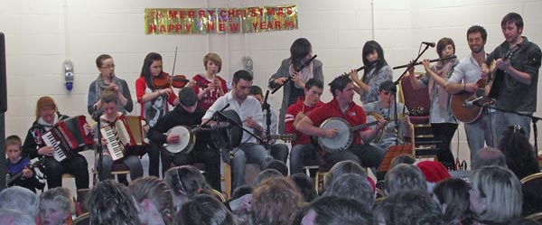 The Traditional Irish Musicians of Marina’s Music classes provided the items for the Christmas Concert in The Blackwater learning Centre on Friday Dec 10th. A full house enjoyed another great night of entertainment and marvelled at the talent of the youth on stage. The Master of Ceremonies was the very popular and talented star, Paul Cassidy, who kept the programme moving at a steady pace and put all the performers at ease as they went on stage.