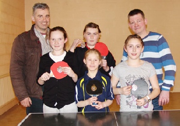 The Donagh Girls U13 Table Tennis Team who won the Gold medal at the County finals on Wednesday, March 9th and some action shots from their games.