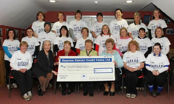 The Jolly Joggers would like to thank everyone who helped in any way tio make their annual Fun Run a success – Glaslough Harriers, Emyvale GFC, Emyvale Leisure Centre, Eamon Farmer, Murphy Sound and Video Services, The Red Cross, The Gardai, Rory Geary and the Northern Standard, Sean McCaffrey and Northern Sound, Peadar McMahon and Emyvale.net, Emy Belles and all those who helped in the kitchen and those who acted as stewards. They are especially grateful to all those who gave sponsorship, made donations of money and food, and to all who took part in the Fun Run. A cheque for €4,000 has been presented to the Monaghan Cancer Support.