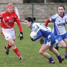 Monaghan Ladies had a great win over tough opposition from Cork in Emyvale on Sunday, February 20th. Monaghan were playing with the aid of a strong breeze in the first half and had built up a 6 point lead. However Cork was always threatening and would have the breeze advantage in the second half. They started the second half with great gusto and began taking points from long range and acute angles whittling the lead to two points. It was difficult to say whether the home side could hold off the challenge but in the final 5 minutes they got a new burst of energy and once again took control in vital areas. They went on to a three point victory - 1 - 13 to 2 - 7.
