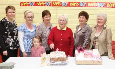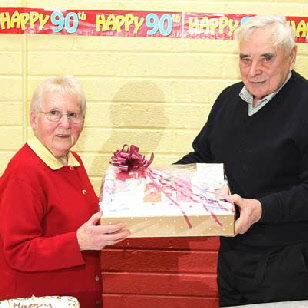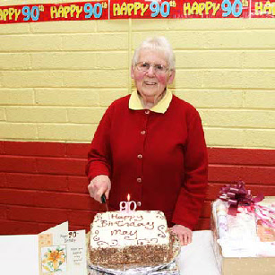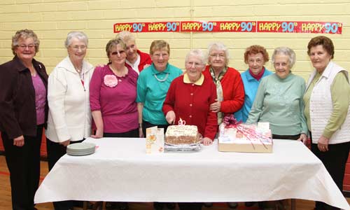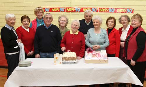 May McKenna, Derrykinnighbeg, celebrates her 90th Birthday this month and as she is a regular attender at the North Monaghan social Services meeting in Emyvale Leisure Centre every Thursday it was decided by the committee to recognise the wonderful occasion with a little party extra. So, after dinner on Thursday March 3rd and in the presence of her colleagues and some members of the family, Barney Treanor representing the organising committee invited May to cut the cake and presented her with a gift. All sang along to Happy Birthday and plenty of photos were taken. We would like to add our congratulations and best wishes to May and wish her many many more years of health and happiness and thank her for her contribution to and support of the community.