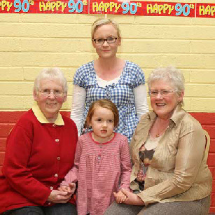 4 Generations: May with daughter, Bridie (Keenan); her daughter Karen (Fields); and her daughter Aoibheann Fields.