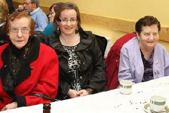 On Friday March 11th a huge crowd gathered in to Truagh Parish Hall, Clara Hall, to celebrate and show appreciation to Josie Brady for all she has done for the area and for Clara Hall in particular. Representatives from groups around the area, and many cross border groups, joined the party. A sumptuous meal was served, and for once, Josie was not working but sitting enjoying the good food and company. After the meal Noel Kelly called her to the stage and a this is your life was presented by him, releasing little details that most did not know and which Josie herself had conveniently forgotten. He highlighted the many ways in which Josie had been involved in community work over many years. A presentation was made by Mary Devlin on behalf of the people of the parish paid tribute to Josie and presented her with a hand carved picture of the Clara Hall. Liz O’Hagan also made a presentation on behalf of the new Hall Committee. Brian Treanor added his words of praise for Josie’s contribution to community life and concluded with a clever poem, written by himself, which recommended Josie as Taoiseach. A presentation was made to her by Nuala McKenna to recognise her contribution to the work of the Blackwater Learning Centre. Further words of thanks were added by Fr. Nolan. Her daughters joined her on stage and Patricia made a very moving statement thanking her as her mother and expressing appreciation for all she did for the family and community.