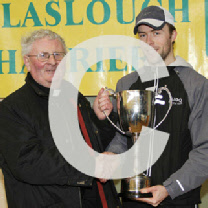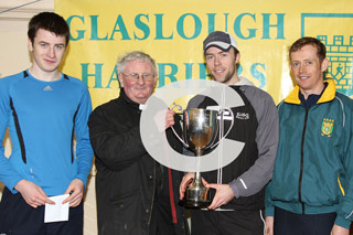Glaslough team accept the Noel Comiskey Cup from Eamonn
