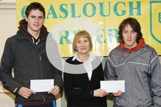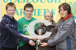 Some of the Glaslough Juveniles with Shane Leslie Cup Padraig Kelly accepts McKenna Cup Felim McQuaid presents his Cup