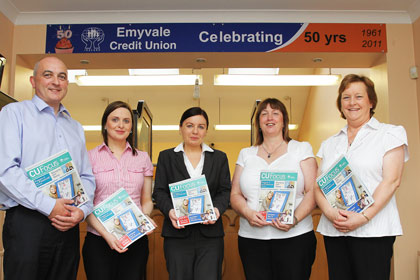 This year, 2011, Emyvale District Credit Union Ltd celebrates 50 years of service to the community of North Monaghan. From very humble beginnings in 1961 to its present status it has provided the people of the area with the opportunity to take control of their own finances. It has helped people to save, it has made loans available to people in times of need and it has served its members in many other ways. Fr. P.E. Larkin CC was the person who persuaded a number of innovative members of the community to set up a Credit Union in 1961 and to those people the region owes a debt of gratitude. The founding members included: Raymond McGreevy; Tom Murray; Susan Gorman, nee McKenna; Benny McKenna, Paddy Willie McKenna, Tommy McCombe; Malachy Corrigan; Barney Kerr; Mick McAree; Seamus McCluskey; Pat Herr and P.J. McEntee.