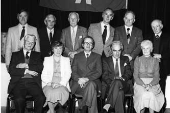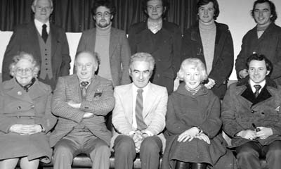 Back row surviving founding members at 21st anniversary: Raymond McGreevy, Seamus McCluskey, Barney Kerr, Pat Herr, Benny McKenna, Mick McAree.