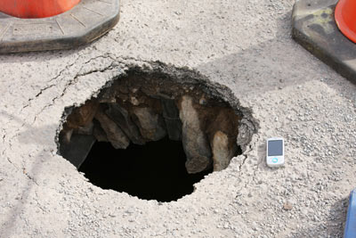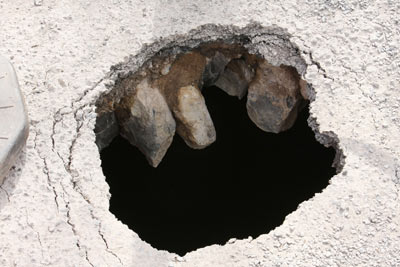 Right: A mobile phone placed beside the hole to give you an idea of the diameter of the hole.