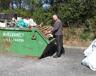 The Volunteers gathered this skip full and the bags full one Saturday morning but as can be seen there is ten times as much still there. In places it would take a Hi-Mac and Tipper lorry to clear all from one or two spots along the road. Monaghan Co Co supplied the skip.