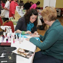 Bernie McBride chats to Una McCague as Majella Treanor, of A New U, applies some nail beauty.