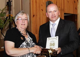 Seamus Sherry retired as Chairman back in March at the AGM and Peggy Treanor took over this onerous task but seems to be coping in fine fashion. At the launch there was a presentation made to Seamus and his good wife Olive, who was also celebrating her birthday. This information was released for public consumption by Seamus, which for other couples might cause friction but for Olive - well she has lived with him long enough now to expect the unexpected. Peggy introduced the event expressing thanks to the sponsors, and all who have worked diligently to prepare for the Show. Representatives of the sponsors were present as were committee members and friends.