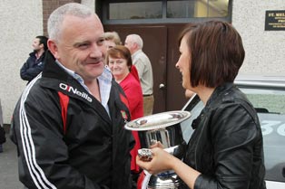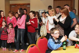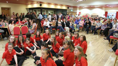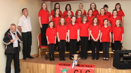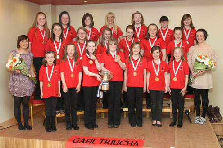 The U13 Girls in the Truagh Choir with their mentors, Emily and Ellen McMeel, returned from the Community Games Finals in Athlone with an All-Ireland victory on Sunday, May 29th 2011. This was a great achievement as the competition was extremely high. They arrived back to St. Mellans where a huge crowd of family, friends and well-wishers gathered to meet them and congratulate them. Inside they were officially welcomed by Chairman of Gaeil Truicha, Raymond Treanor, and Parish Priest, Fr. Sean Nolan. The choir rendered their winning pieces to rapturous applause after which Emily presented the All-Ireland medal to each participant. Two of the girls, on behalf of the choir, presented bouquets of flowers to Emily and Ellen.