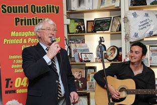 Country Singer Larry Cunningham, spent a couple of hours in Sound Quality in Monaghan on Saturday June 4th. He sang some of his hits and responded to requests from the many who turned out to greet him. He was kept busy signing autographs for the fans and chatting to people who made his acquaintance at a dance somewhere during his singing career. One couple produced a photo taken with Larry at a dance in Northern Ireland and they were married the same day as Larry. Sound Quality had a range of items dedicated to Larry as well as his Cds and DVDs. We have some photos of Larry with fans.