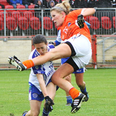 Monaghan ladies set down a marker for other teams that they intend business and have their eyes firmly on the Ulster Title in 2011. It was a very good performance but when the rain became heavier it was difficult to play good open running football. We look forward to a good run for the girls this year and wish them every success.