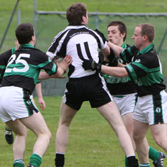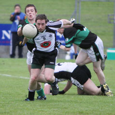 As for the game in general - Emyvale had a few players who seemed to have insufficient commitment. Emmet Colleran was very strong at the back and read the game well to be in position. Darren McKernan put in the effort but his opponent was allowed too much space. Gregory Devlin made an impact when he was taken on as the middle of the field was losing out to the opponents. Brendan O’Brien also had a good game using his height and speed advantage. Up front Daniel McMahon scored some lovely points and was in the making of others while Marty McAree tried hard but his marker closed him down on a few occasions. Other players tried but with, what appeared, a lack of enthusiasm and taking the wrong option too often. Overall it was a scrappy game, which was more a slogging match at times, with too much pulling and charging.