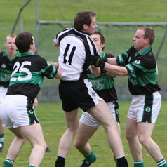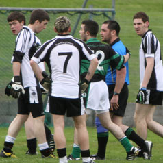 Emyvale got through their championship game on Friday night in Rooskey against a strong Blackhill side. However they made hard work of it and lost their keeper to a red card in the process. There were examples of players unable to accept referees decisions leading to a loss of concentration on the game. It is also a fact that poor refereeing can incite players to heated exchanges and allow play to deteriorate ending with yellow and red cards, but the outcome will always be the same - the referee will always win.