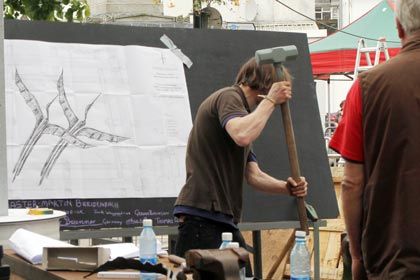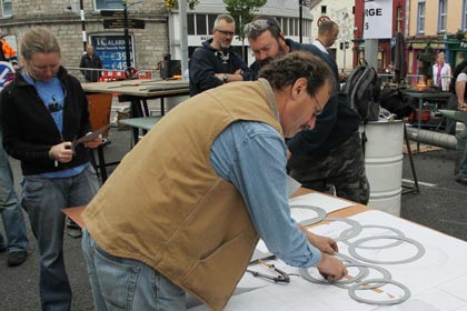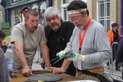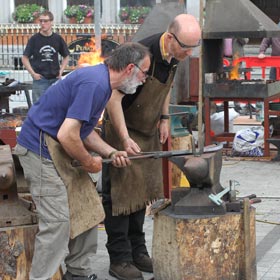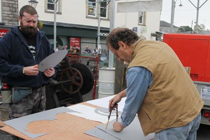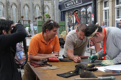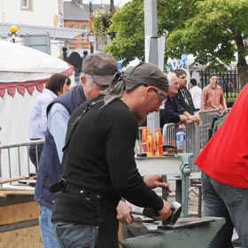 From the 23rd to the 26th of June International Blacksmiths gathered in Monaghan for the International festival. Forges were set up with special cover in the Diamond and Church Square and the blacksmiths plied their trade for the public to see, exam and admire or whatever. There was a buzz about the town on Friday with the Farmers Market and the Buskers weekend in the special marquee in Church Square together with the Blacksmiths. Not everyone was happy with what was going on and the difficulty of getting into, around and out of town was a complaint for some. Some shopkeepers claimed that things were quieter than usual even with the added influx of people. The pity is that all came together along with the National Cycling Championships and that Monaghan could have had greater benefit had they been over three weekends. You cannot win em all.