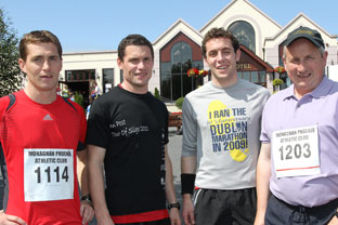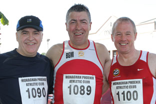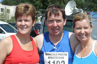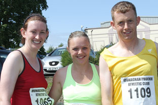Phoenix AC Monaghan organised a Run on Sunday, July 24th 2011 to raise funds for the club. There were two routes - a 10 mile one which took the contestants from the Four Seasons Hotel to town and then out to Ballinode and back to the Four Seasons and the other was into town and back to base via Blackwater Vale. Patrick Cassidy, Glaslough, led all the way and was first over the line in the 10 mile. Karl Kildea was in 2nd place. It was a very successful event though some of those doing the 4 Mile expressed disappointed that the Finish line for them was so indistinct. It looked as if they did not count even though they had paid a good entry fee. The two finishing lines should have been at same point perhaps. The nondescript Certificate handed to them afterwards was a throw-away rather than a keepsake. Perhaps this is something the organisers would need to give some attention to for next year, if they want participants to enter the 4 mile run. Patrick Murphy was first home in the 4 mile and Amy Hamill was 1st Girl home.